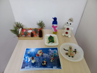 Сондай-ақ, өткен апта бойы балалар жаңа жылдық көрмеге қатысу үшін өздерінің қолөнер бұйымдарын, суреттерін әкелді.